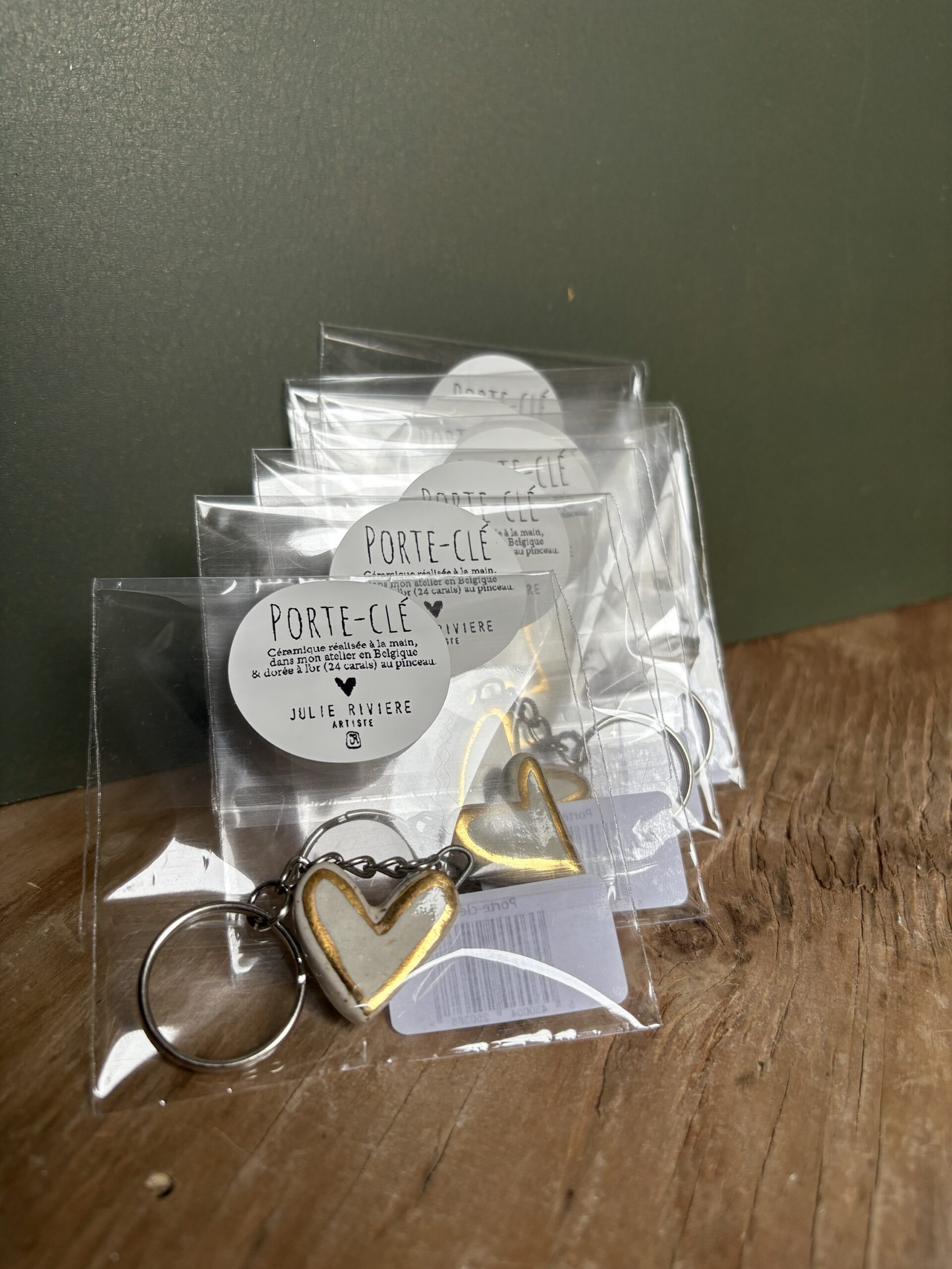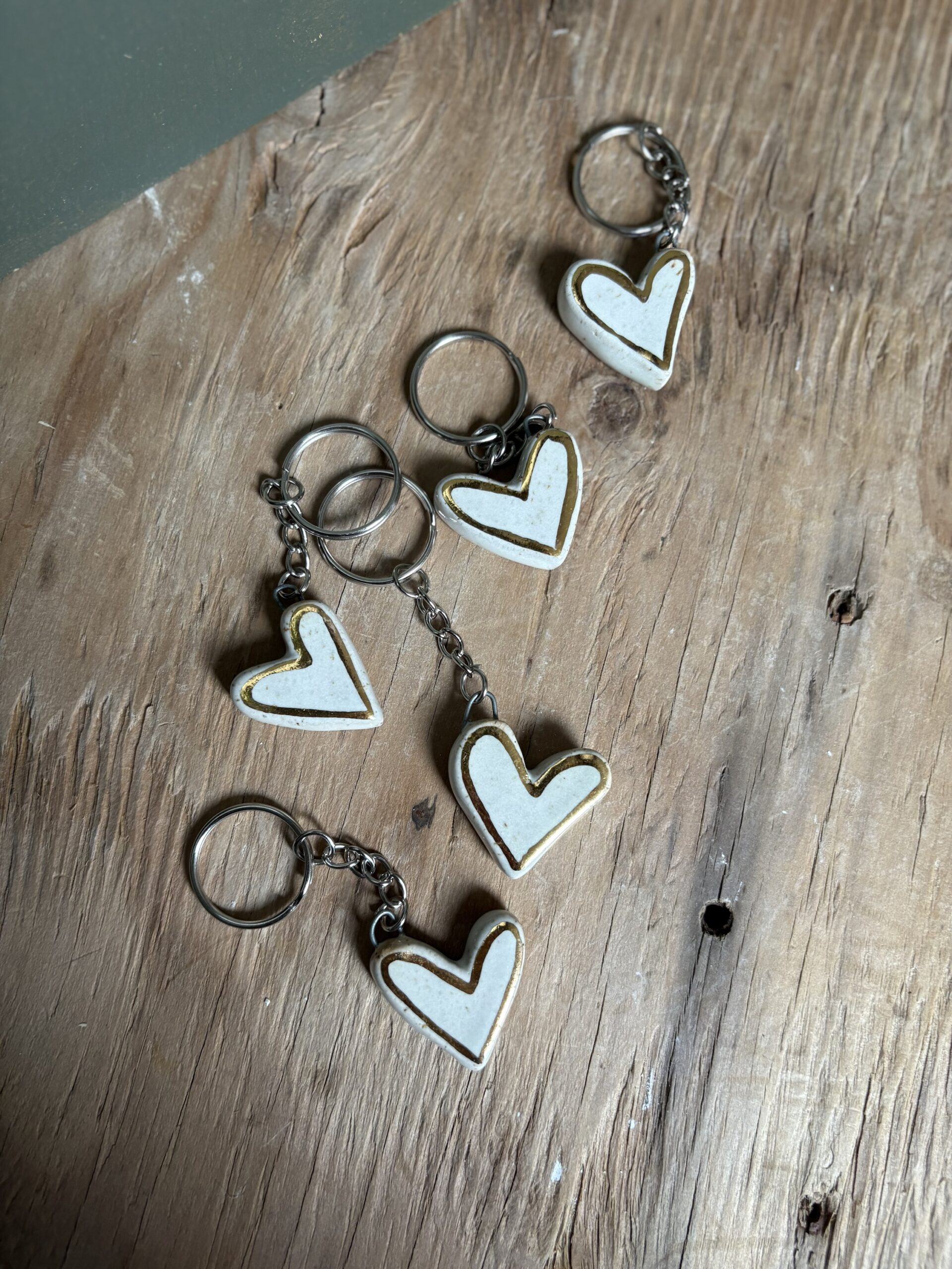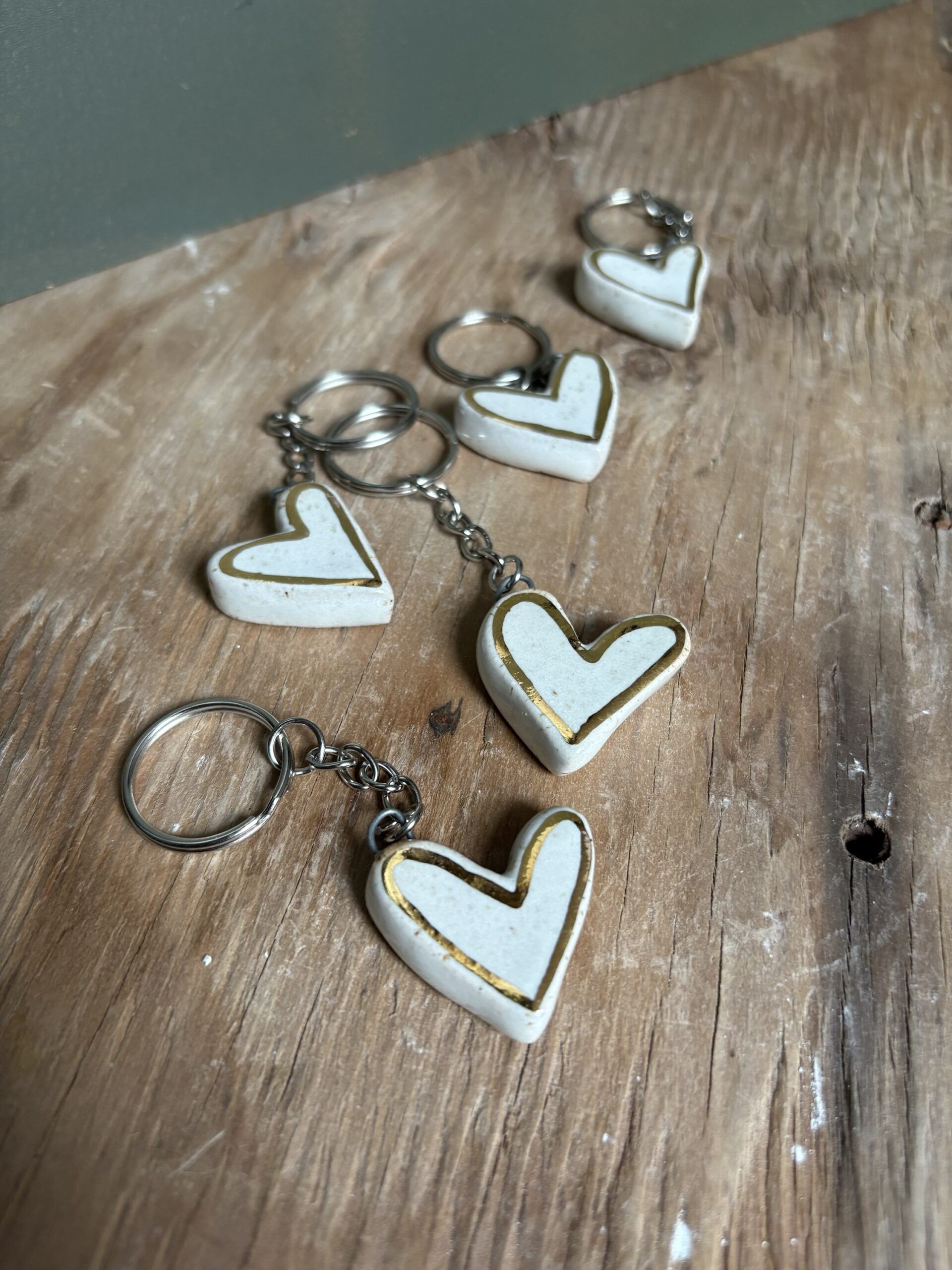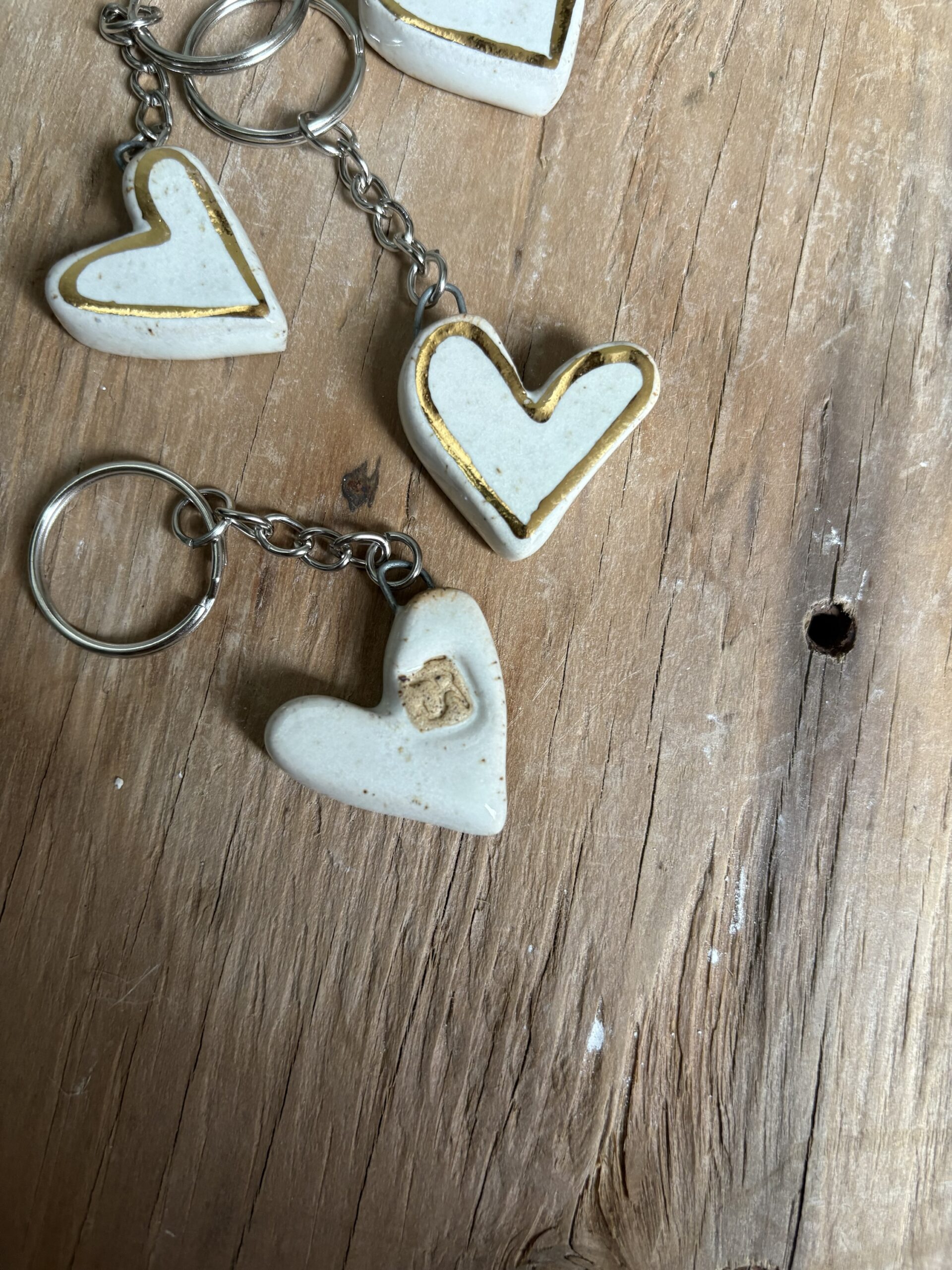 Porte-clés uniques en forme de coeur, façonnés à la main et peint avec de l’or (24 carats) au pinceau.