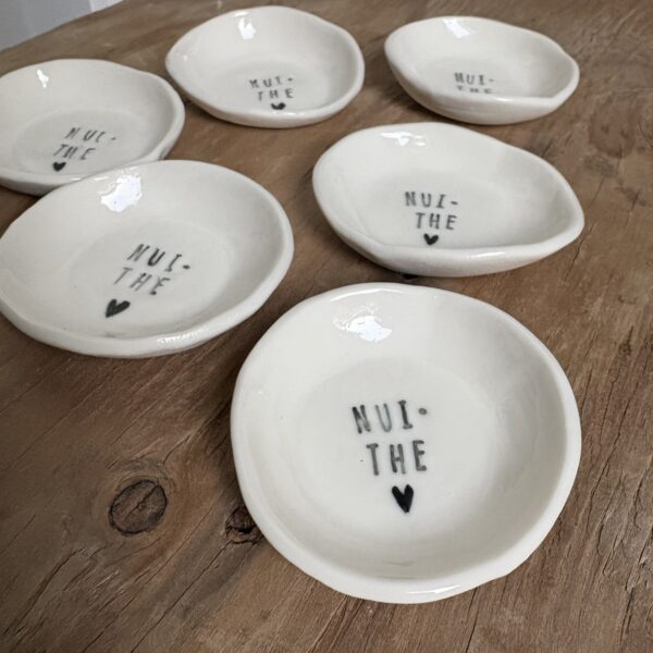 Il s’agit d’une pièce imparfaite : en cuisant, une petite crasse est venue se rajouter au dessus du coeur. Le repose-thé est tout a fait utilisable.