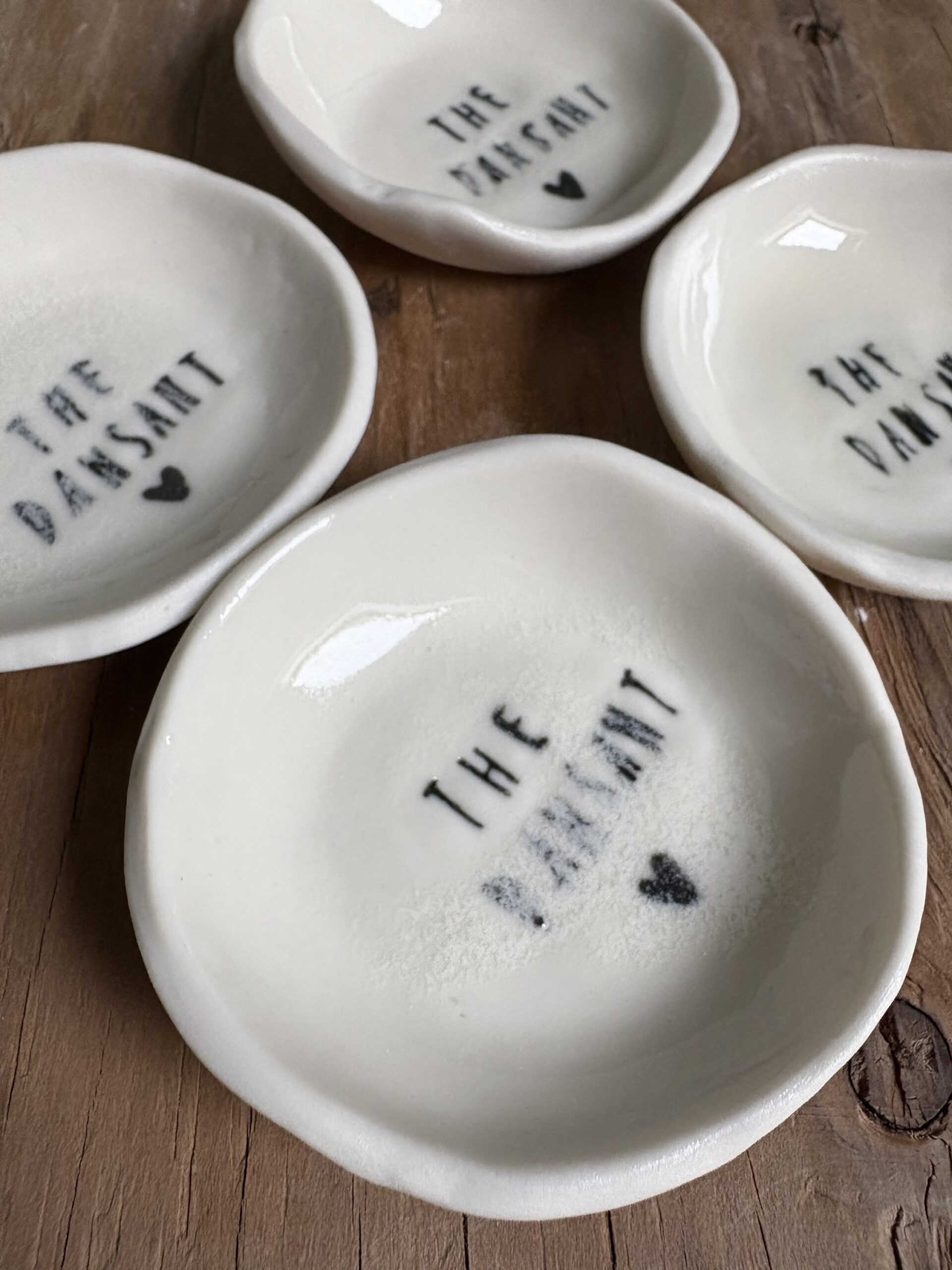 Il s’agit d’une pièce imparfaite : il y a eu trop d’émail dessus qui cache un peu le mot… Mais le repose-thé est tout a fait utilisable.