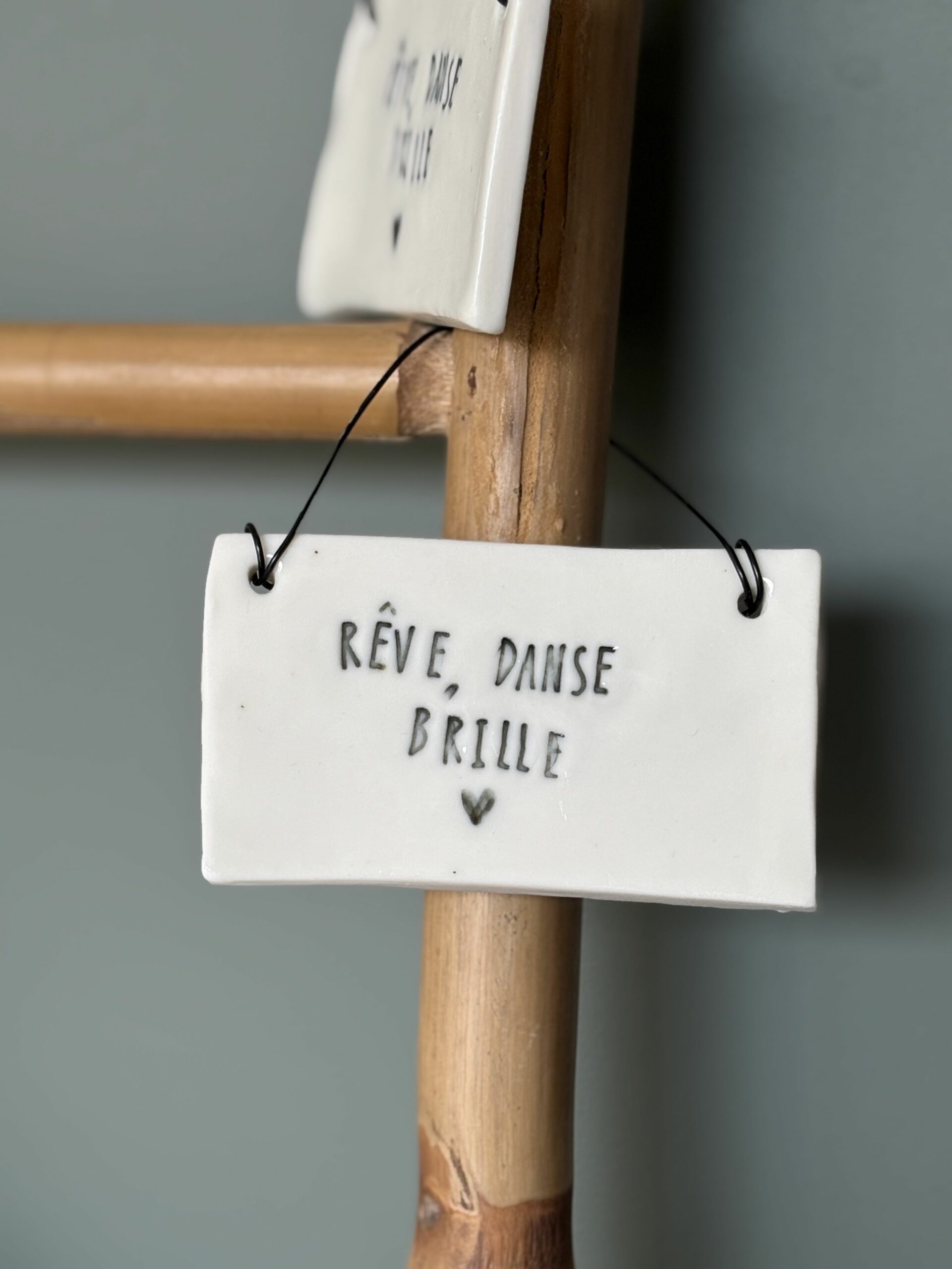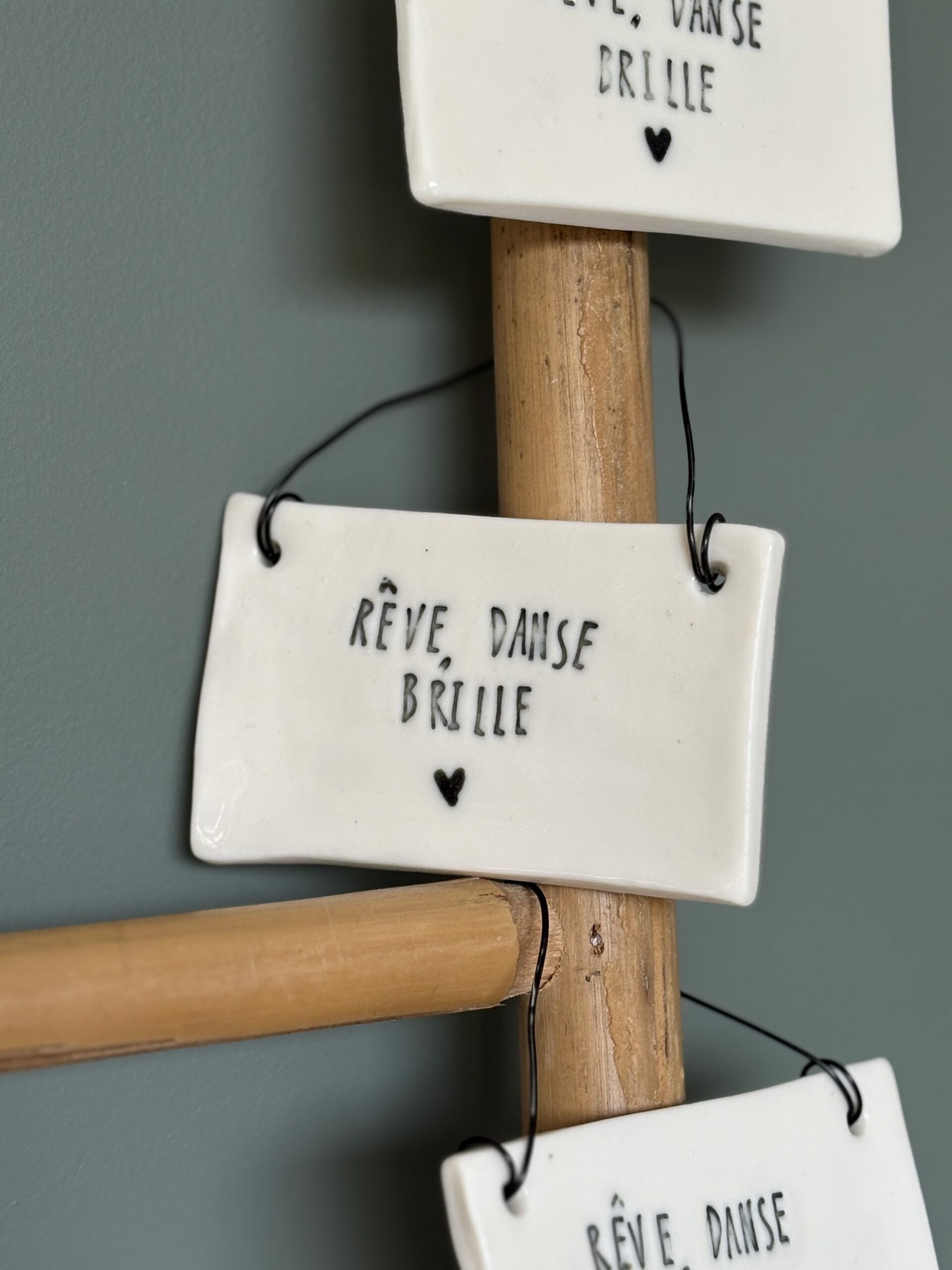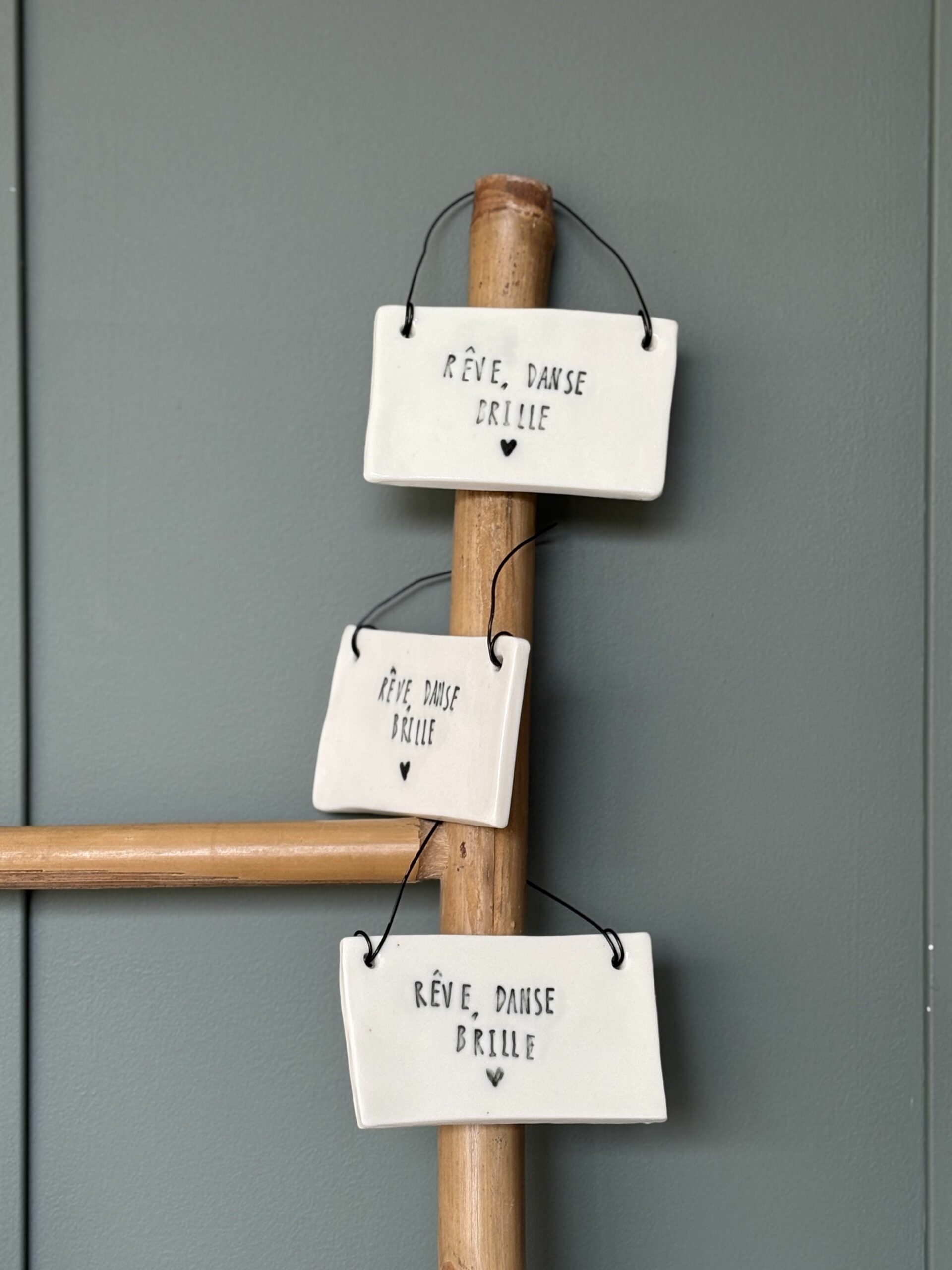 Plaques « mot doux », façonnés à la main. Aucune pièce ne se ressemble, c’est la magie de l’artisanat 🙂